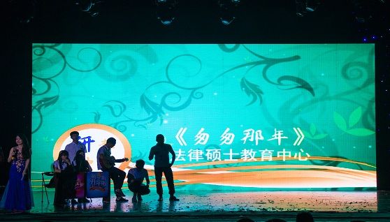 法律硕士教育中心代表队为全校师生带来的节目是情景剧《匆匆那年》,节目以研究生的整个学习生涯为主线,分为新生报到、图书馆学习、宿舍生活、毕业季的离别和展望、工作后的重聚和全体成员对自己、学校、对未来的宣誓五个部分。