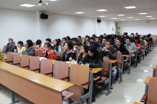 在座同学认真听讲座并记录