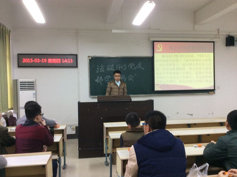 法律硕士教育中心学生党支部学习“两会”精神系列活动--2014级法硕三班举办“聚焦两会,关注中国”主题学习活动