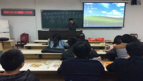 (通讯员 苏国庆 摄影 吴雪)2015年11月5日下午14时,法硕1403班在文添楼101教室举行学习《中国共产党廉洁自律准则》(以下简称《准则》)和《中国共产党纪律处分条例》(以下简称《条例》)活动。此次活动由党支部书记国胜利同志主持并对《准则》和《条例》内容制作PPT进行讲解。