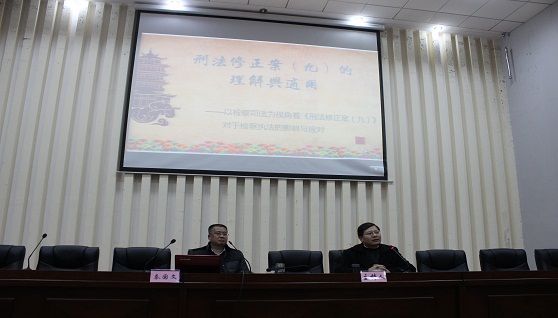 第二部分主要是刑法修正案(九)的主要内容解读。在该部分中,秦检察长具体到每一个修改的条文中,从中探索刑法修改的法学理论支持以及修改后的刑法条文对于当下的检察工作的积极作用,并列举了大量的案例,生动形象的为大家呈现出了刑修九的理论和实践意义。