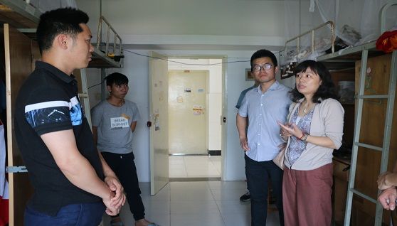 在检查中,潘丰文书记亲切地询问宿舍同学关于安全用电、防火等日常宿舍生活中需要掌握的基本技能方面问题,叮嘱同学们要注意夏季用电安全。