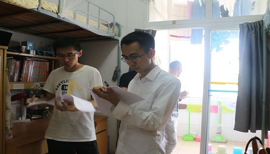 (通讯员:熊玉娟 摄影:熊玉娟)为了进一步提高学生安全卫生意识,创建整洁文明的学习和生活环境, 5月17日下午14时,在法硕中心学生党总支书记潘丰文和辅导员刘翔的带领下,各班学生代表组成检查小组对全体在校生宿舍进行了安全卫生检查活动。