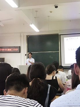 班会第一项:刘翔老师首先对2017级新生的到来表示祝贺和欢迎。随后,刘老师向同学们简要介绍了法律硕士教育中心的发展历程,使同学们进一步加深了对中心的了解,更加向往今后的研究生生活。