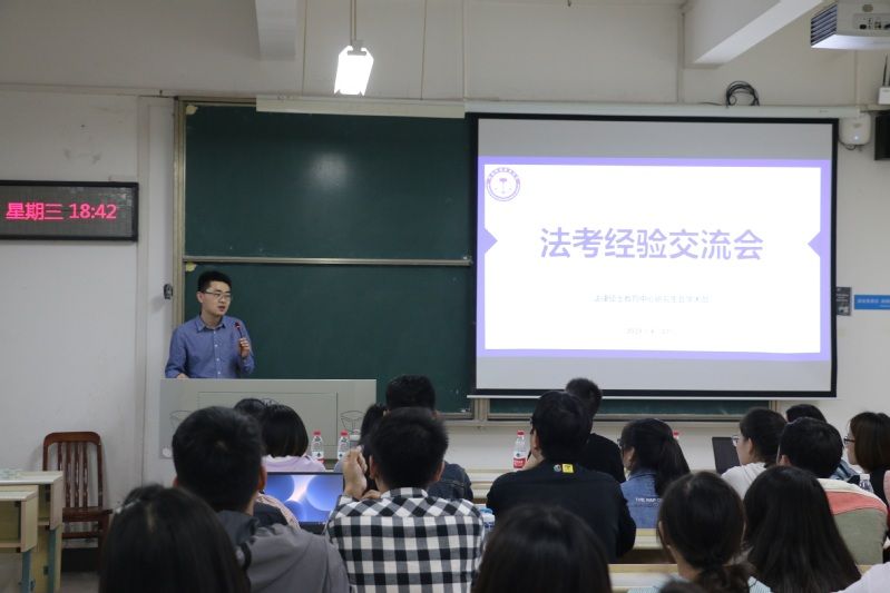 (通讯员 郑一帆 摄影 郑一帆)2019年4月17日晚六点半,法律硕士教育中心法考经验交流会在文添楼112举行,本次交流会邀请了刘炯、颜咪、晏昊以及黄兴娥4位在2018年高分通过法考的同学给大家分享他们的“通关经验”。