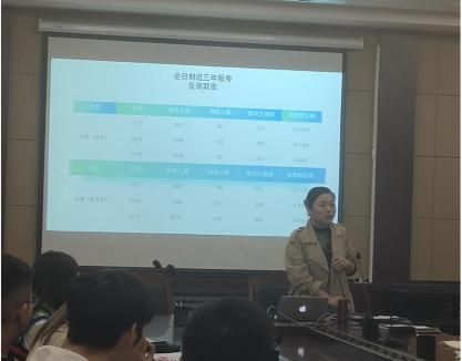 李杨老师从中心近三年报考及录取率、毕业就业率以及我校奖助学金体系等方面对中心研究生的培养与管理做了系统介绍,并向同学们详细解读了关于法律硕士最新的招生动态和就业前景。