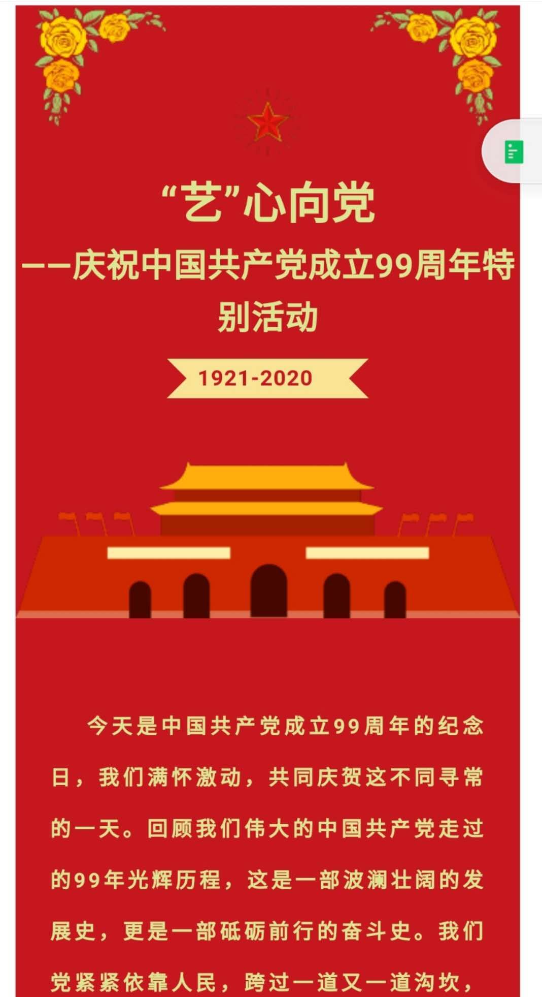 (通讯员:王怡)2020年7月1日,中国共产党走过了九十九年光辉历程,迎来了第九十九个生日。暨此之际,法律硕士教育中心学生党总支举办了“艺”心向党系列活动,以一张张旧相片、三行诗、小视频等方式为党生日献礼,寄寓着法硕师生对党和祖国的美好祝愿。