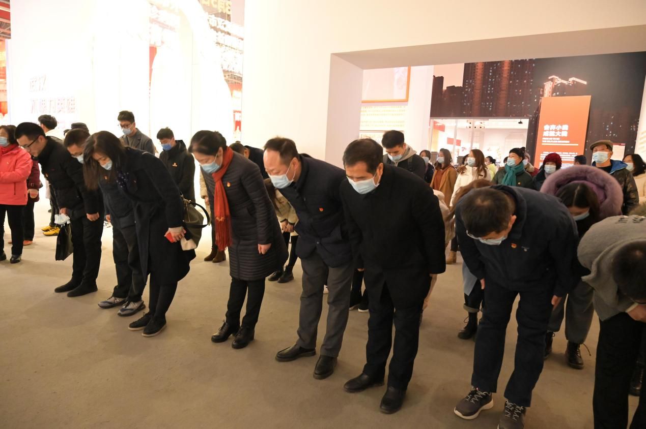 在参观的过程中,看到一面面鲜红战旗,党旗在狙击疫情的战场上永远高高飘扬。党员组成突击队、先锋岗,冲在前、干在前,甘于奉献,肯与担当,也有很多街道社区的工作者在平凡的岗位上默默坚守,为疫情防控无私奉献。在灾难面前,中华民族像石榴籽一样紧紧抱在一起,一幕幕感人之壮举、一场场战斗之凯歌,令人感动。在第三展厅,面对在此次疫情中做出伟大牺牲的医务工作者生平记录,姚莉副校长和全体参观师生向战“疫”中牺牲的人民英雄致敬,向疫情中逝世的同胞默哀。