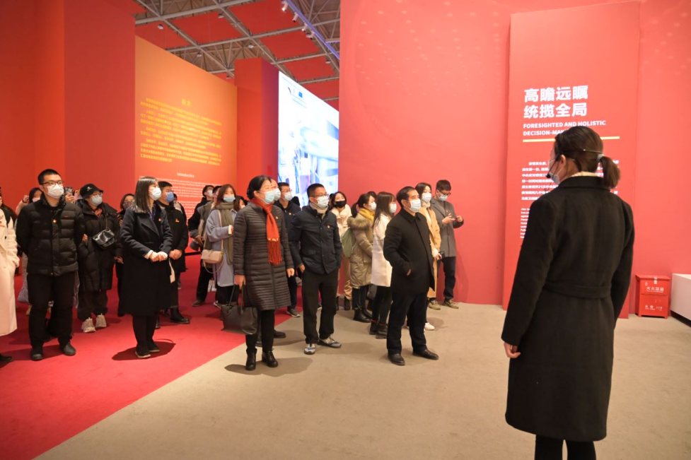 走进展厅,一条长长的时间轴,记录了疫情防控的44个重要时间节点,展区中央大屏幕上习近平总书记亲自部署、亲自指挥的部分视频令人感动,体现了总书记人民至上的为民情怀。在疫情面前,党员干部请缨出战灾区,身临抗疫一线,自觉担当作为;医务人员治病救人敢于冲锋在前,不畏生死疲劳;无数志愿者夜以继日,投身志愿全力以赴;多种力量各尽所能,各省市心系灾区,捐款捐物,辗转千里,对口支援,共渡疫情难关。在这场伟大斗争中,英雄的中国人民以大无畏的担当、舍生忘死的精神书写万众一心、决胜于疫的时代答卷。