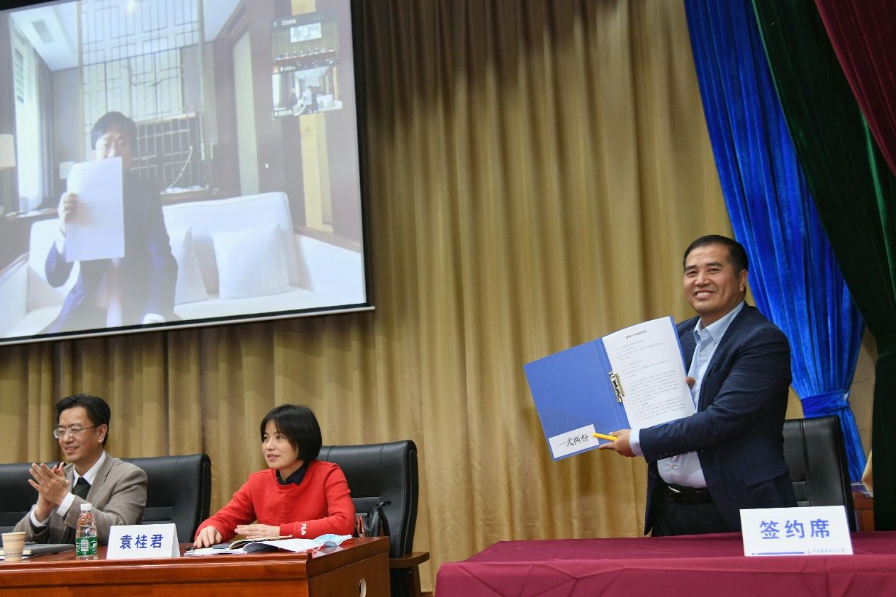 本次签约仪式采取线上线下相结合的方式进行,中国国际经济贸易仲裁委员会仲裁研究所主任、湖北分会秘书长姚俊逸与法律硕士教育中心主任简基松共同完成签约。