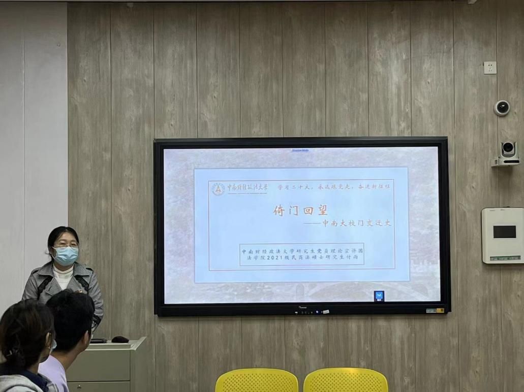 活动第二项为理论学习部分,两支部共同深入学习,领会党的二十大精神。首先由法学院本科生第三党支部李妍婧同志、张凯博同志分别带领学习《中共中央关于认真学习宣传贯彻党的二十大精神的决定》和《中共中南财经政法大学委员会关于深入学习宣传贯彻党的二十大精神的实施方案》,强调要切实把二十大精神转化为加强专业学习的内在动力,做到所学即所用,所学即能用,让所学的理论知识运用到日常生活的实践当中。