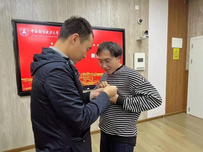 活动第三项为支部联动环节,为增进联动成效,增进在日常生活和学习中的联系,共同进步,研究生党员和本科生党员结成对子,并邀请老党员为本月转正的新党员佩戴党员徽章。法硕中心2204班党支部潘娜同志结合自己曾经在军队中结对子的经历,表达了对本次支部共建结对子的感受并提出建议。法学院本科生第三党支部尚芮汀同志表达了对本次新老党员结对子活动的认识和感悟,同时也表达了对研究生师姐师兄的感谢。