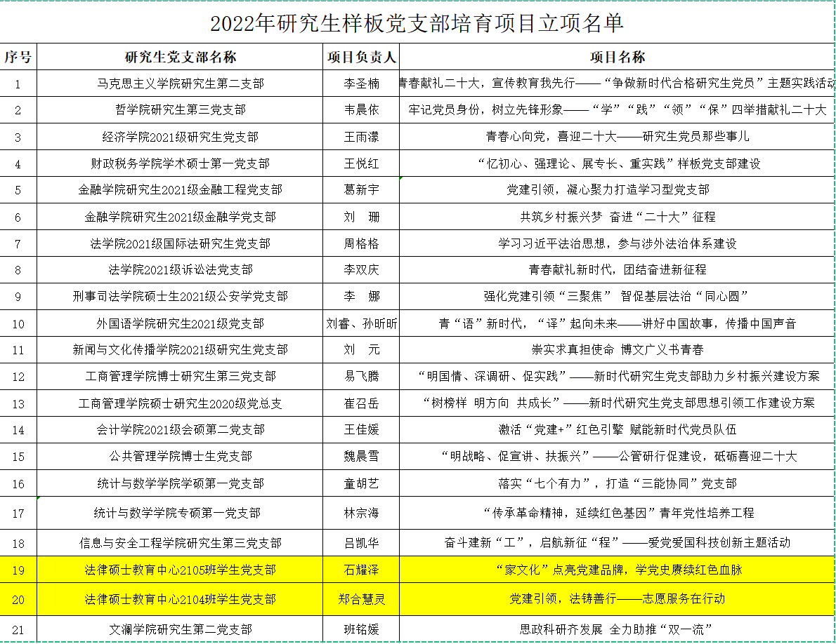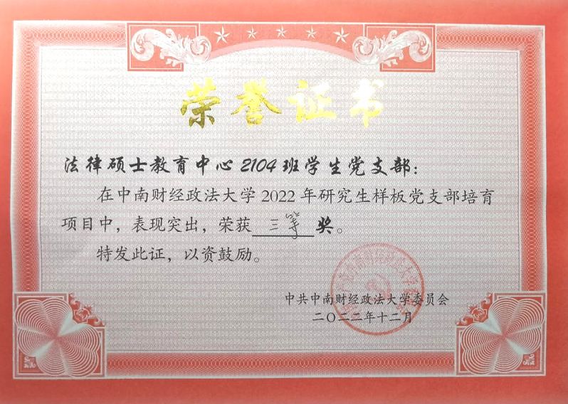 法硕2104班学生党支部获2022年研究生样板党支部培育项目三等奖