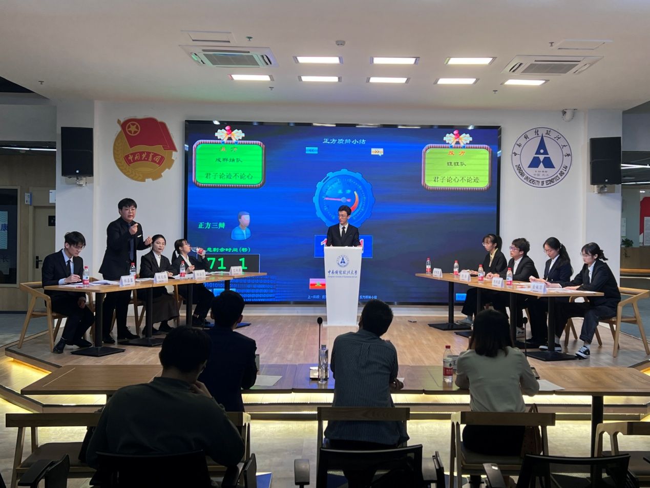 本次复赛设置两场比赛,由来自3个学院的16位辩手组成4支代表队围绕“君子论迹不论心/君子论心不论迹”、“女士优先的倡导是在平权/反平权”两道辩题展开辩论。