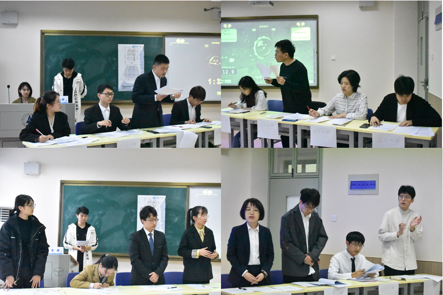 八支辩论队伍分别就“涉毒艺人是否应当终身禁业”、“打假主要依靠监管者还是消费者”、“对恶性事件的背景报道利大于弊还是弊大于利”、“人工智能是否应当拥有法律人格”四个辩题展开了交锋。正式比赛过程中,一辩选手对核心观点进行全方位阐述,开篇立论;驳论环节,二辩选手对对方的观点进行驳斥;盘问环节,三辩选手就立论中的漏洞进行质询,一、二、四辩进行回答,三辩进行总结;自由辩论环节,辩手们充足的赛前准备和较好的临场应变能力使得现场相关理论与例证的演绎拆解十分精彩;总结陈词环节,四辩对本场比赛核心议题与争议焦点进行总结与陈述,重申己方观点。以辩明智,以论明理。各参赛队伍各抒己见,在思想上激烈碰撞,赛况紧张焦灼而精彩。