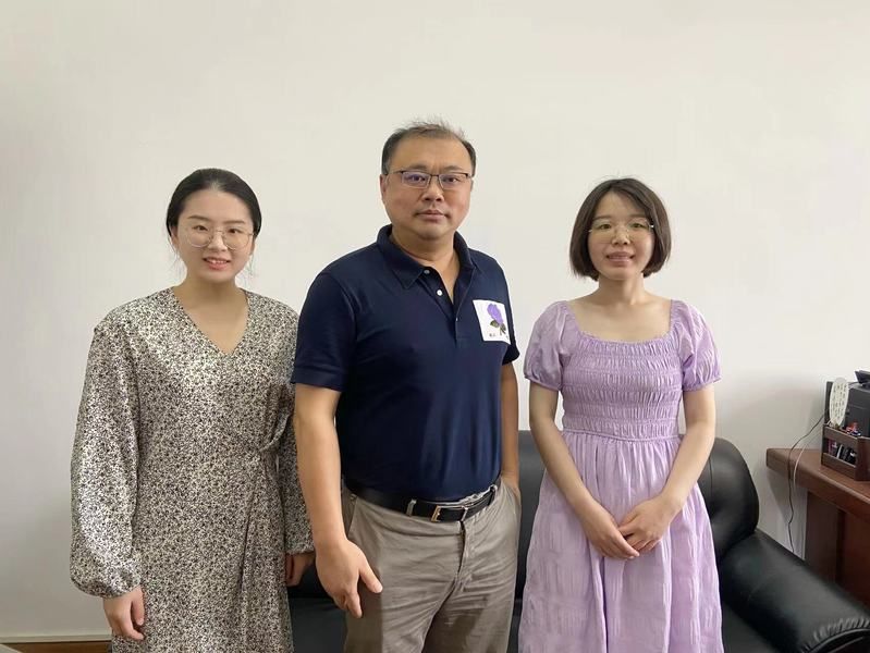 陈虹老师(中)与采访记者2022级法律硕士研究生陆盈伶(左)、2022级法律硕士研究生郭艳艳(右)合影