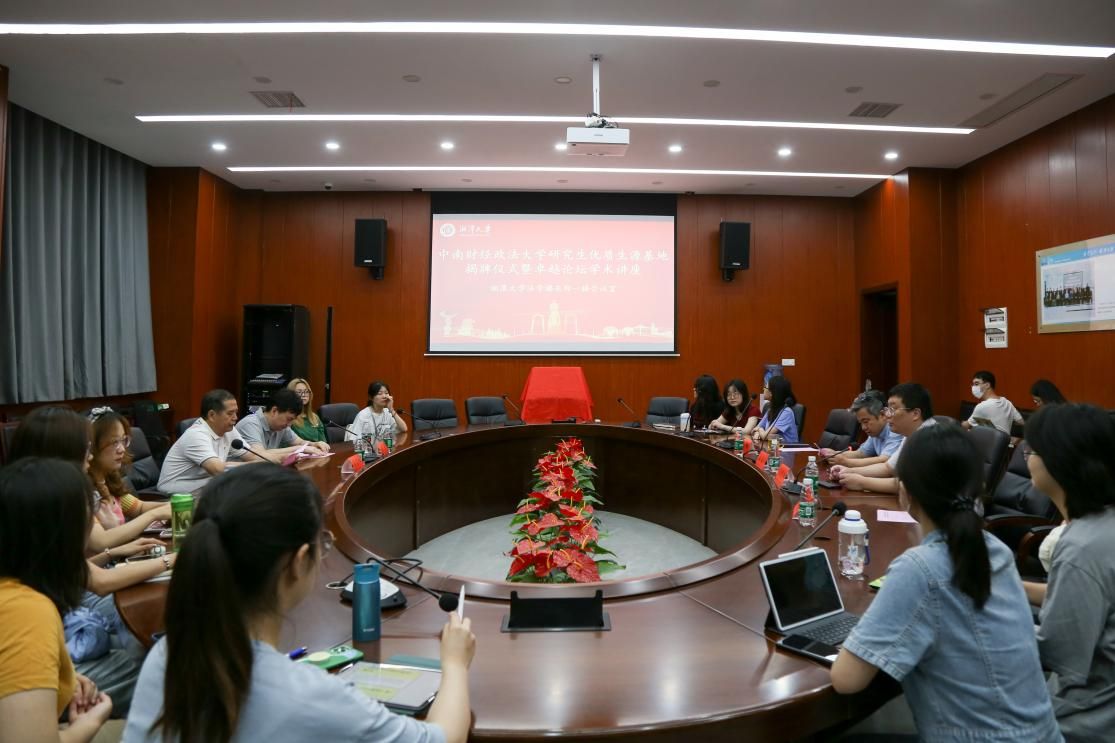 为进一步提升法律硕士教育中心生源质量,切实做好招生宣传工作,共创优秀人才培育共赢的局面。2023年6月13日,法律硕士教育中心主任简基松、办公主任侯竟一行赴湘潭大学法学院进行招生宣讲,并举行“中南财经政法大学研究生优质生源地”挂牌仪式,湘潭大学法学院欧爱民院长、连光阳副院长、蔡高强教授等出席此次挂牌仪式。