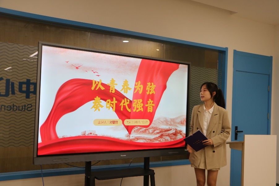 第七位选手是来自2023级非法2班的刘馨宜,她的主题是“以青春为弦,奏时代强音”。讲述了中国共产党的历史,通过回顾党史认识新中国。我们生逢其时,也应重任在肩,让我们在这新时代的背景下,让我们在党的领导下,乘风破浪,激涌千里,让我们在青春中活发,让我们为祖国而奋斗。