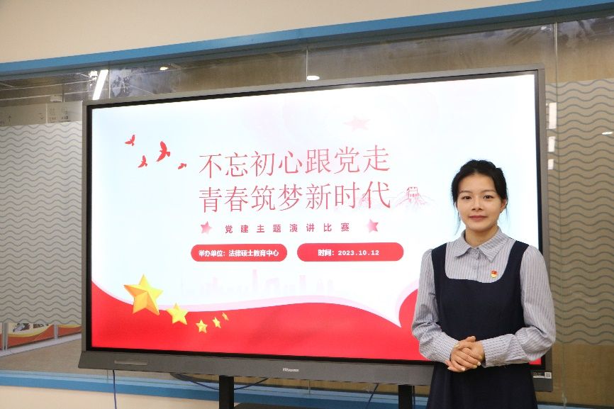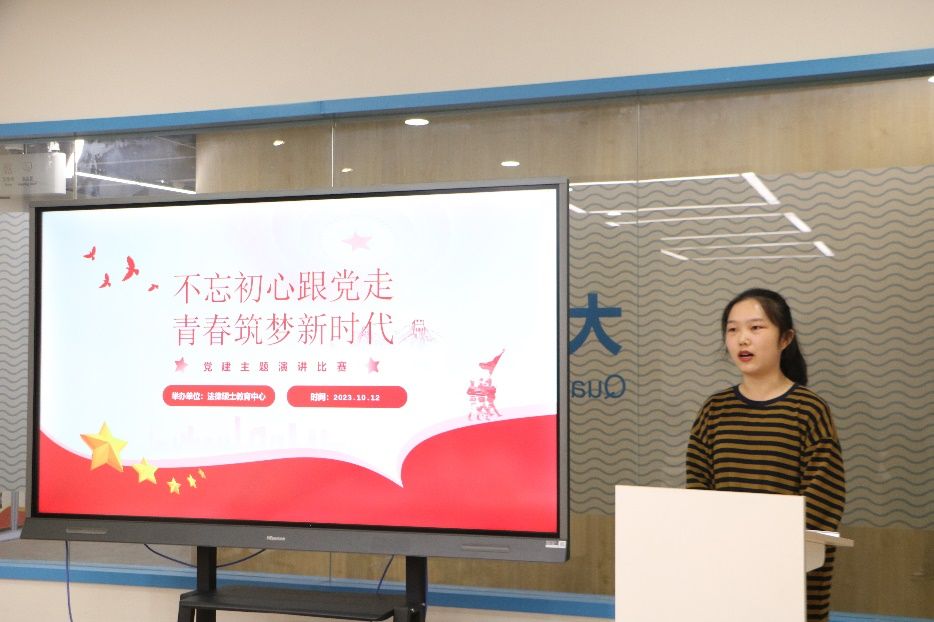 (通讯员 余安琪 高天霖 朱浩泽 摄影 蒋琳琳)10月12日上午,法律硕士教育中心党建新闻工作站和团总支在大学生素质教育中心02号会议室举办了以“不忘初心跟党走,青春筑梦新时代”为主题的研究生党建主题演讲比赛。本次比赛邀请了团总支副书记苏利珍,党建新闻工作站2届站长李晚林、李雪,副站长朱浩泽,2022年党建主题演讲比赛一等奖获得者袁鑫祺担任评委。