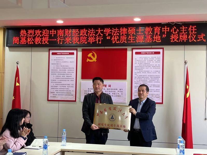 在双方共同见证下举行了“中南财经政法大学法律硕士教育中心优质生源地”挂牌仪式。