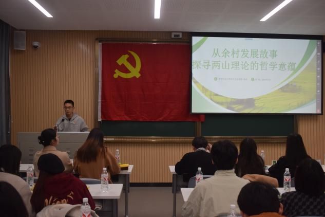 华中农业大学研究生宣讲团成员章钦同志以《从余村发展故事探寻两山理论的哲学意蕴》为题作理论宣讲。通过深入解读余村的发展故事,探寻了“两山”理论的哲学内涵,引发党员深入思考。
