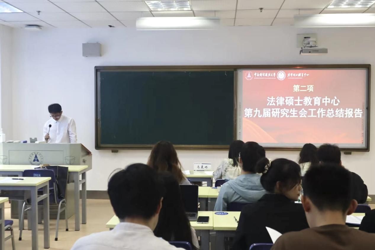 大会第二项,听取并审议《中南财经政法大学法律硕士教育中心第九届研究生会工作报告》。第九届研究生会主席团成员王铸进行汇报,详细回顾了过去一年研究生会在学术科研、校园文化、社会实践等方面的工作成果和亮点。