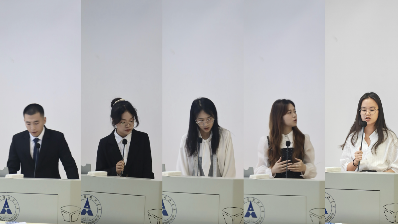 大会第四项,选举产生中南财经政法大学法律硕士教育中心第十届研究生会主席团。竞选人段嘉乐、付雅睿、王晓草、杨春立、陈庆瑶按顺序依次上台竞选,他们通过精彩的演讲和答辩展示了自己的能力和优势,表达了继续为研究生服务的决心与信心。