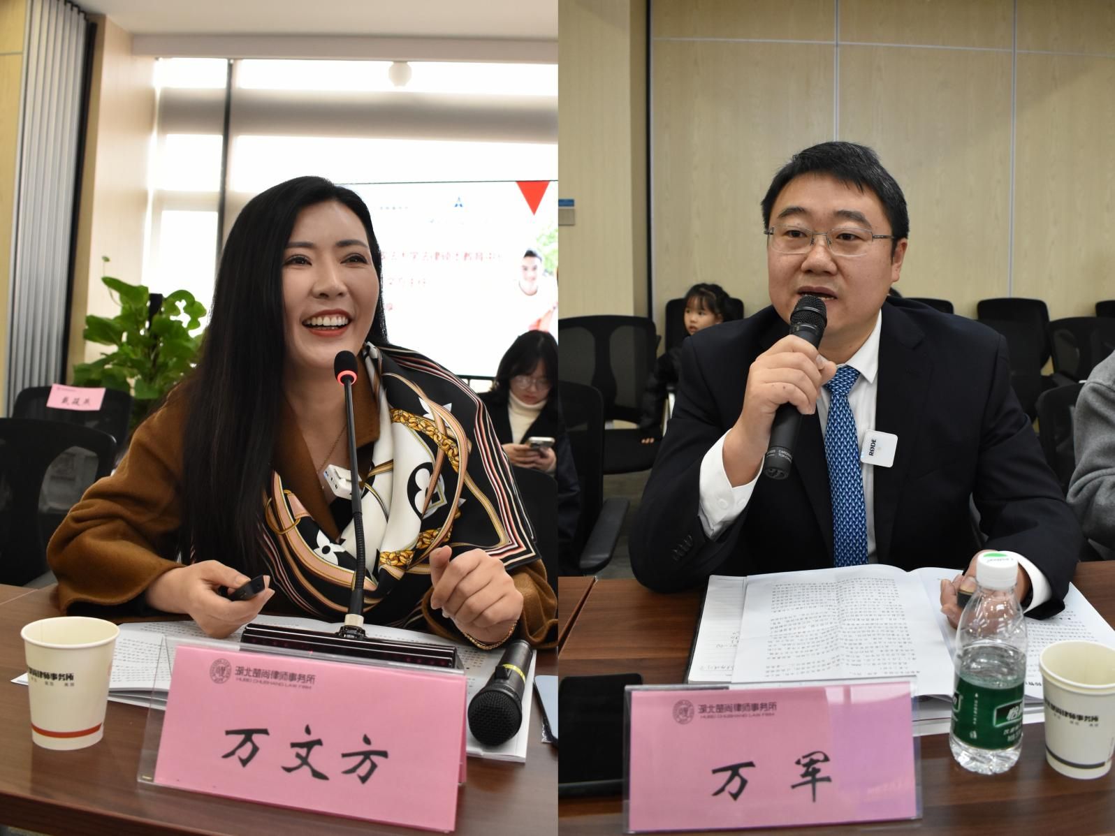 合作导师指导经验分享阶段,广东万方律师事务所主任万文方、湖北楚尚律师事务所学术委员会主任万军作为合作导师代表分享指导经验。万文方指出信任与责任是律所成功的核心理念,要通过案例授课与实习基地建设加强学生的实战思维培养,注重结果导向,提升调解与执行力。她鼓励学生积极主动规划职业方向,愿意为其提供成长平台和就业机会。万军分享了自己作为法律硕士合作导师的经验与心得。他表示,作为导师,不仅要帮助学生了解司法实务、缓解学业压力,还要通过“传帮带”促进学生成长。律所的良性发展离不开年轻律师的加入,希望更多青年人加入律师行业,担当更大责任,开拓更广阔的职业道路。
