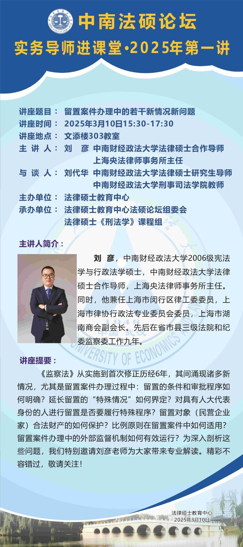 中南法硕论坛 实务导师进课堂 · 2025年第1讲:留置案件办理中的若干新情况新问题